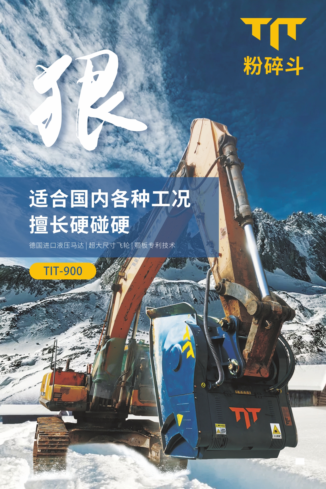 TIT粉碎斗也稱破碎斗,顎式破碎斗,是一款創(chuàng)新型挖掘機屬具,掛于挖掘機大臂上,可快速將工程惰性材料破碎成極具價值的工程用料。